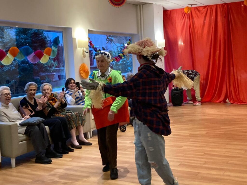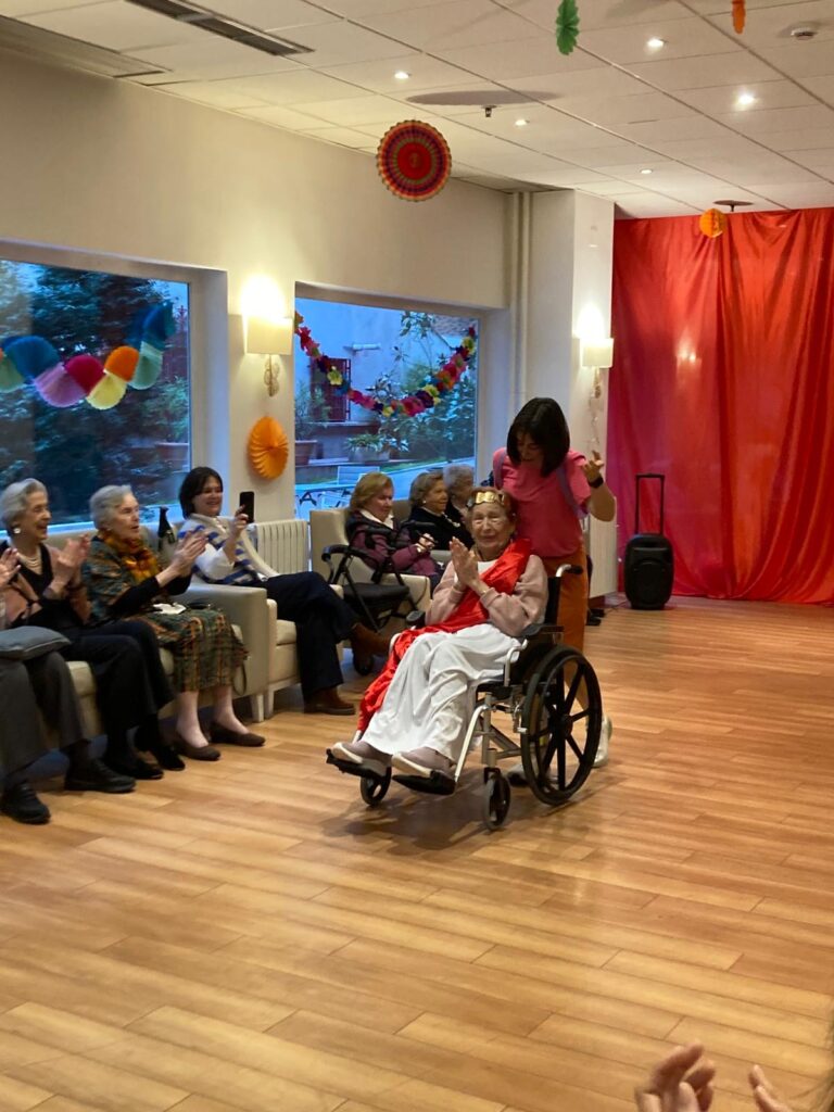 Sombreros atrevidos, pelucas llamativas, trajes divertidos… Los residentes que lo desearon se vistieron con sus mejores galas para un desfile lleno de risas y orgullo. Algunos caminaron, otros se desplazaron en silla de ruedas, todos participaron a su manera. Y, sobre todo, todos brillaron.