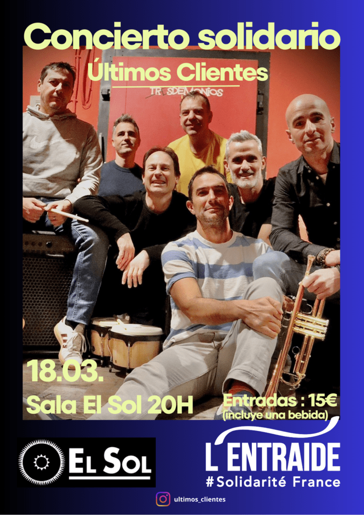 Concierto solidario en beneficio de l’Entraide el miércoles 18 de marzo a las 20h30 en la Sala Sol, calle Jardines 3 – metro Gran Via